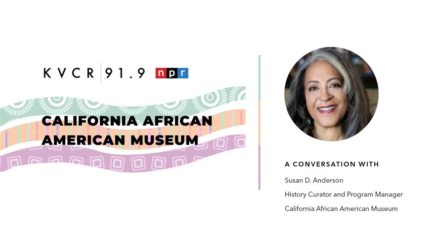 With KVCR Public Media, I'm Maya Gwynn with Black Perspectives IE, a show where we learn about the amazing things members of the Black community are doing in the Inland Empire. My guest today is Susan D. Anderson, History Curator and Program Manager at the California African American Museum. Thank you so much for joining us today. I really appreciate it. I know you're very busy and I'm really excited to talk about your exhibition.