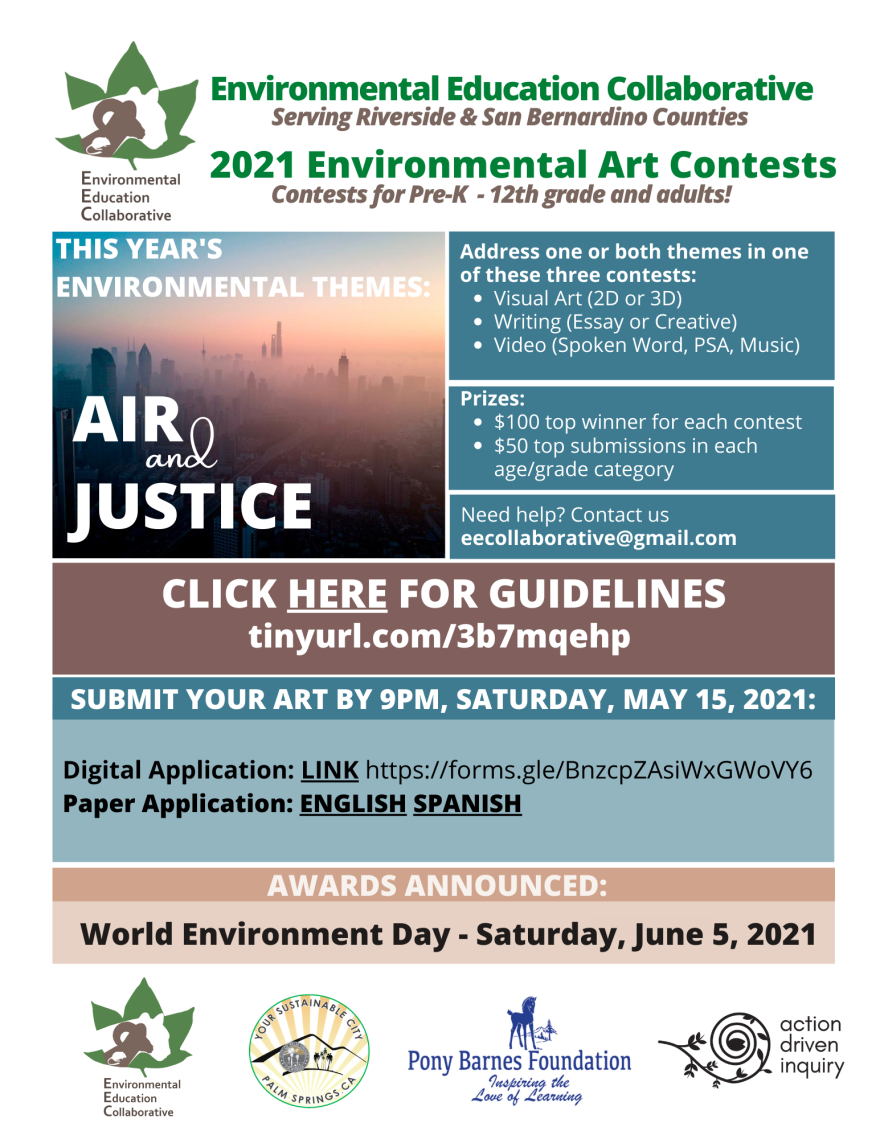 The Environmental Education Collaborative, a nonprofit which seeks to advance environmental education in the Inland Empire, is holding a 2021 art contest with the themes of air and justice.